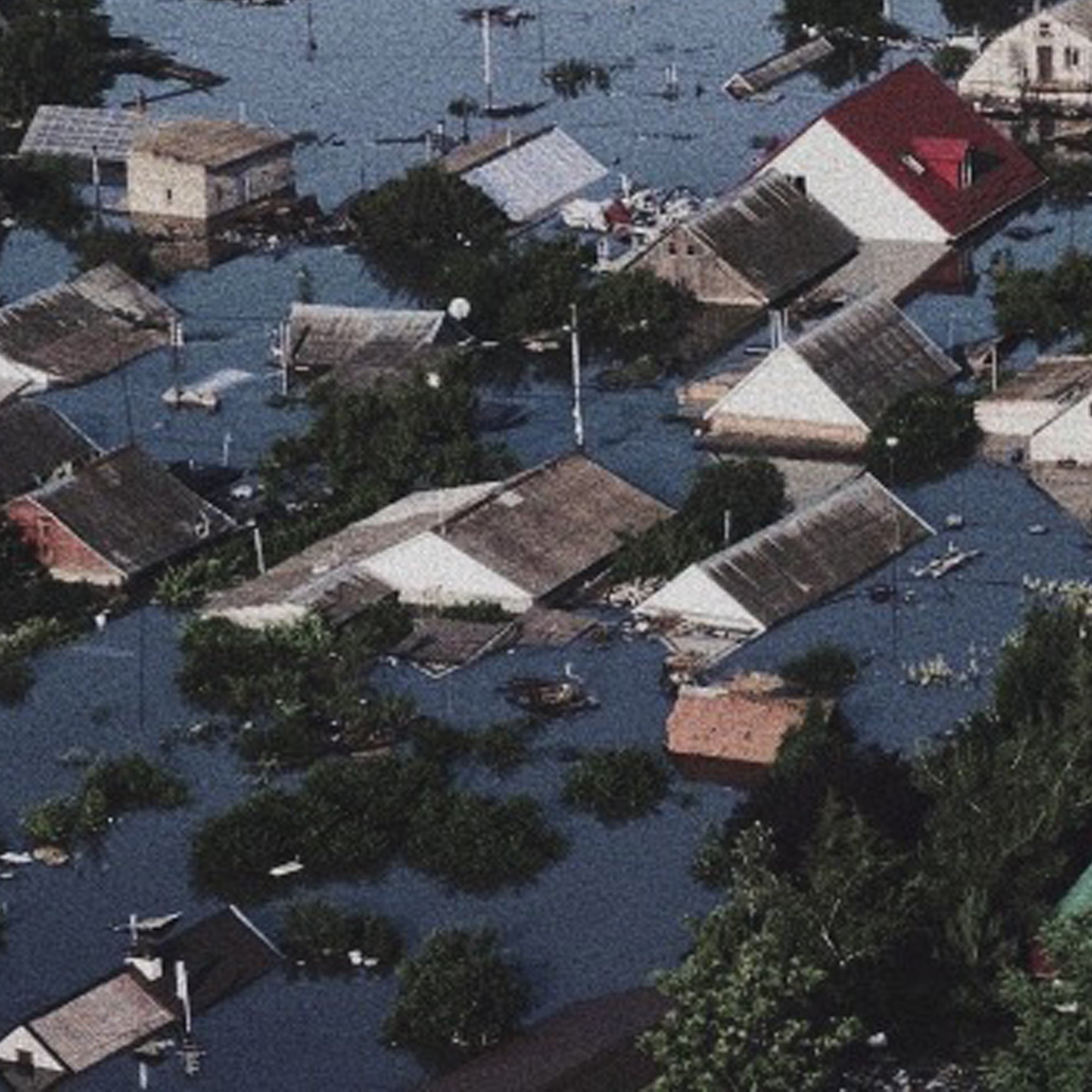 Flooded city after the russian terrorist act - the explosion of the Kakhovska Hydroelectric Power Station