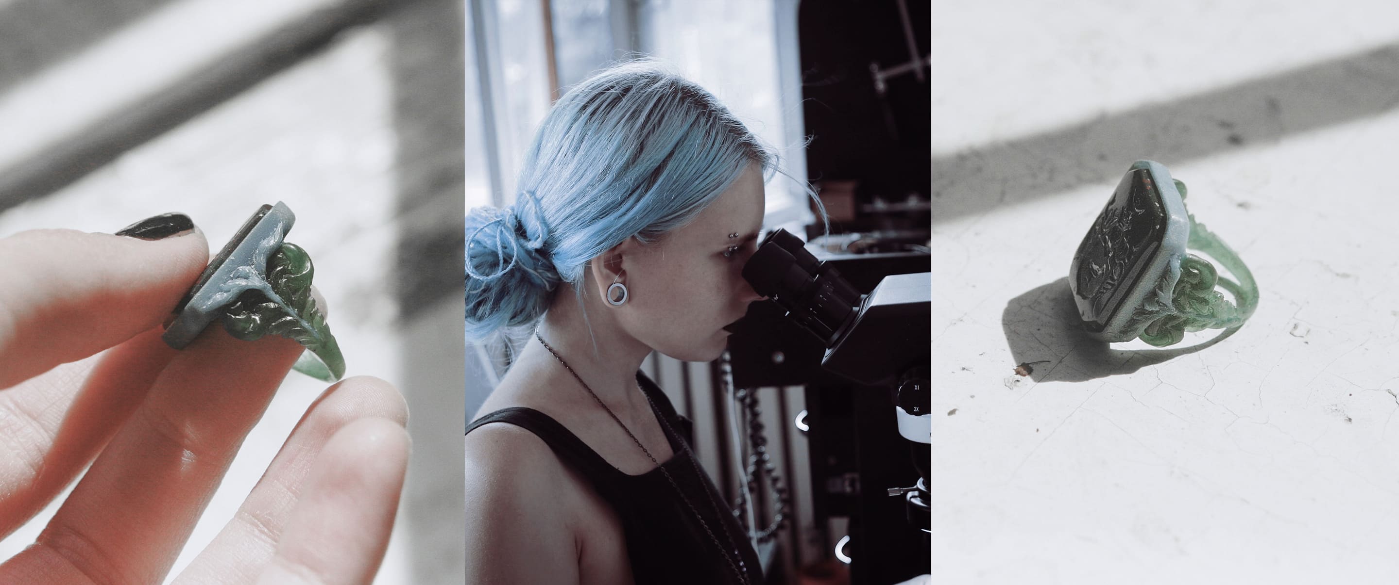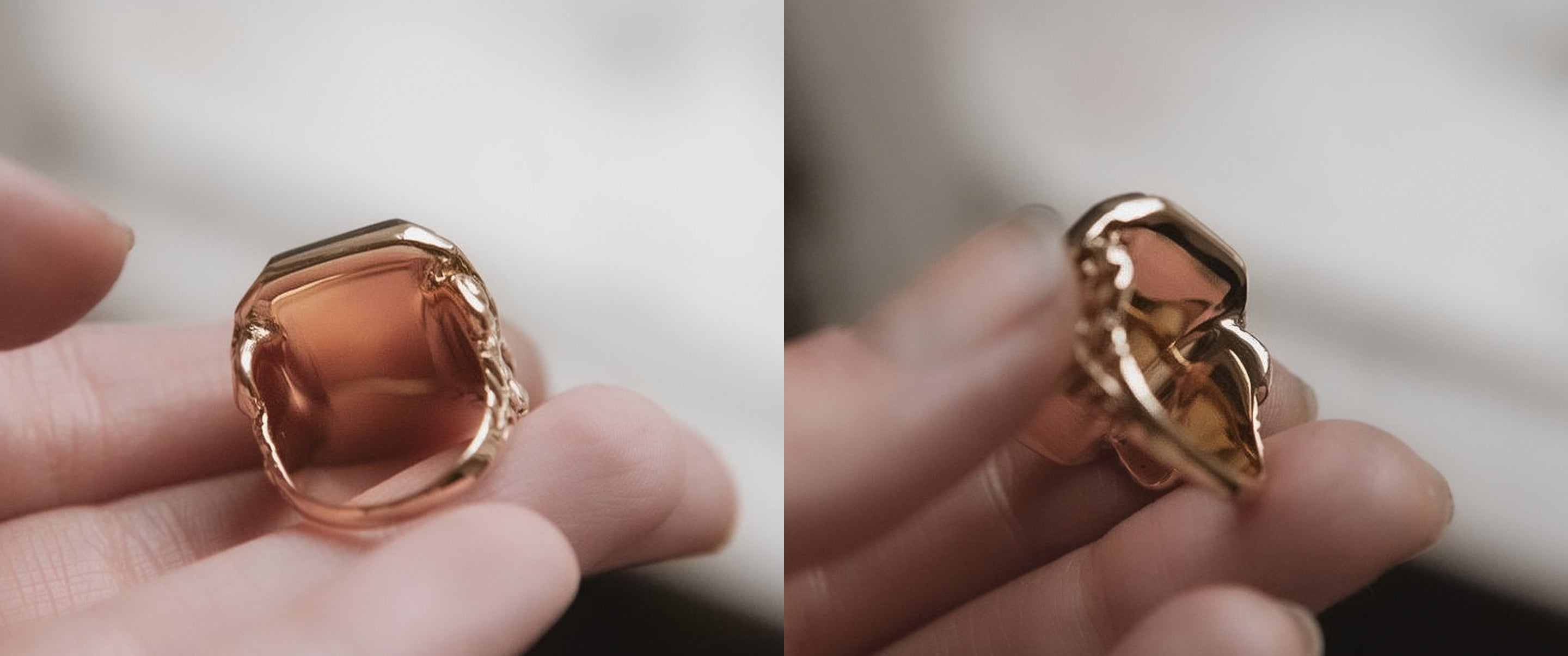 I use a meticulous technique, handcrafting the jewelry wax into a master model.