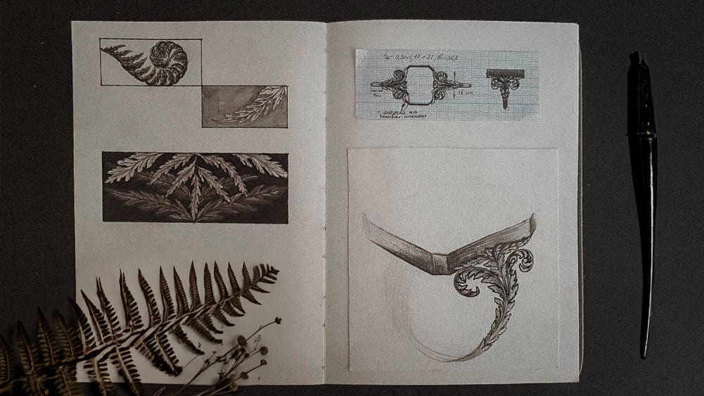 3. After a 50% advance payment or full payment, I start working on sketches and the concept of the jewelry.