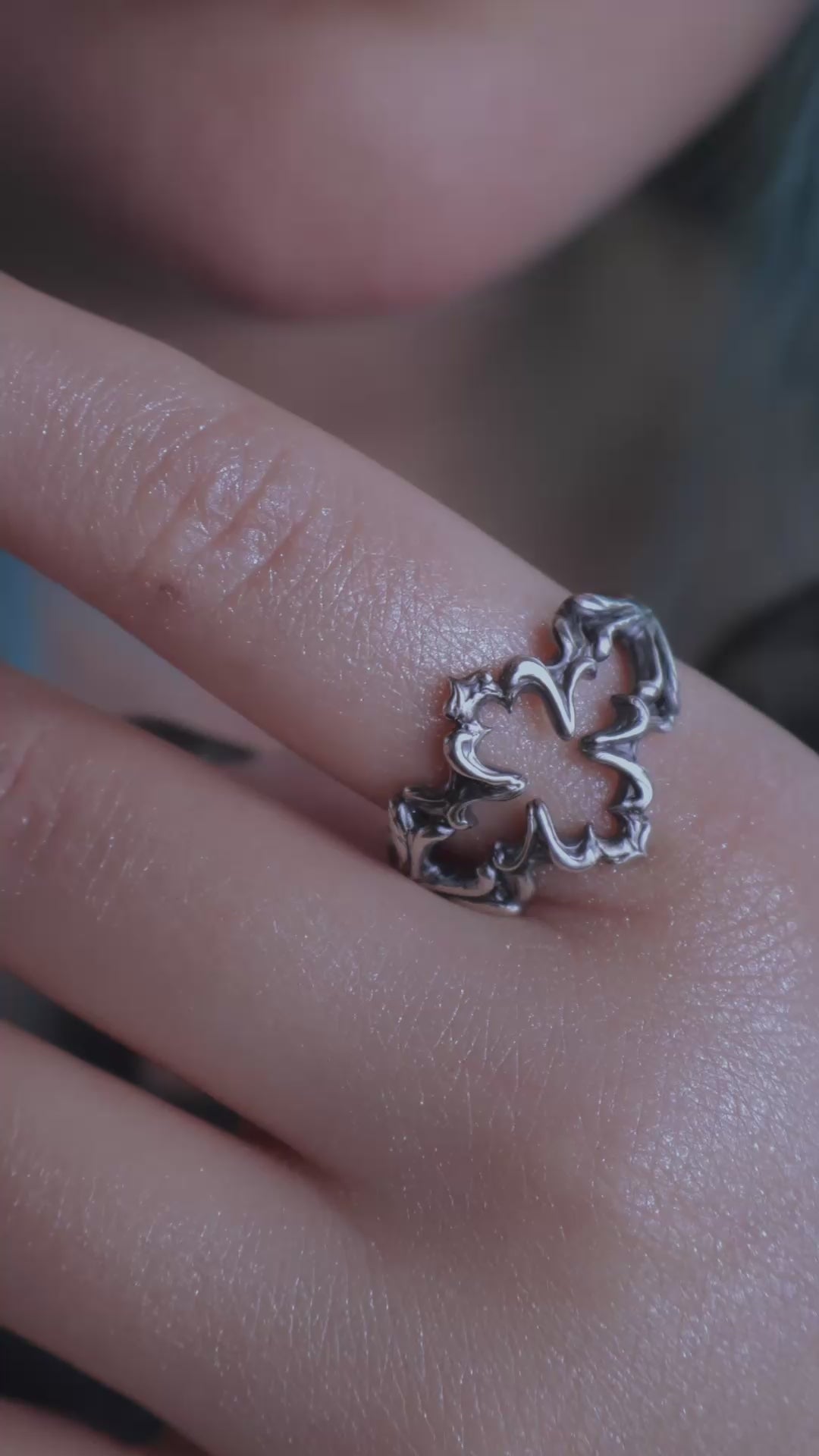 I often leave pieces without coating, embracing the natural silver color. The pure silver hue pairs best with dark stones, creating a contrasting look where the metal surface accentuates the depth of the stone's color.